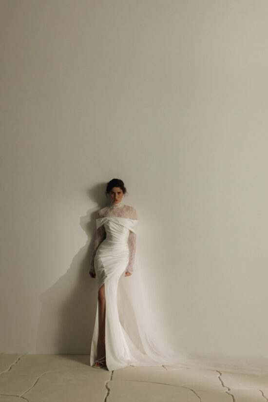 L’atelier si sviluppa in tre showroom: il primo dedicato interamente alla Sposa, il secondo concepito per lo Sposo…